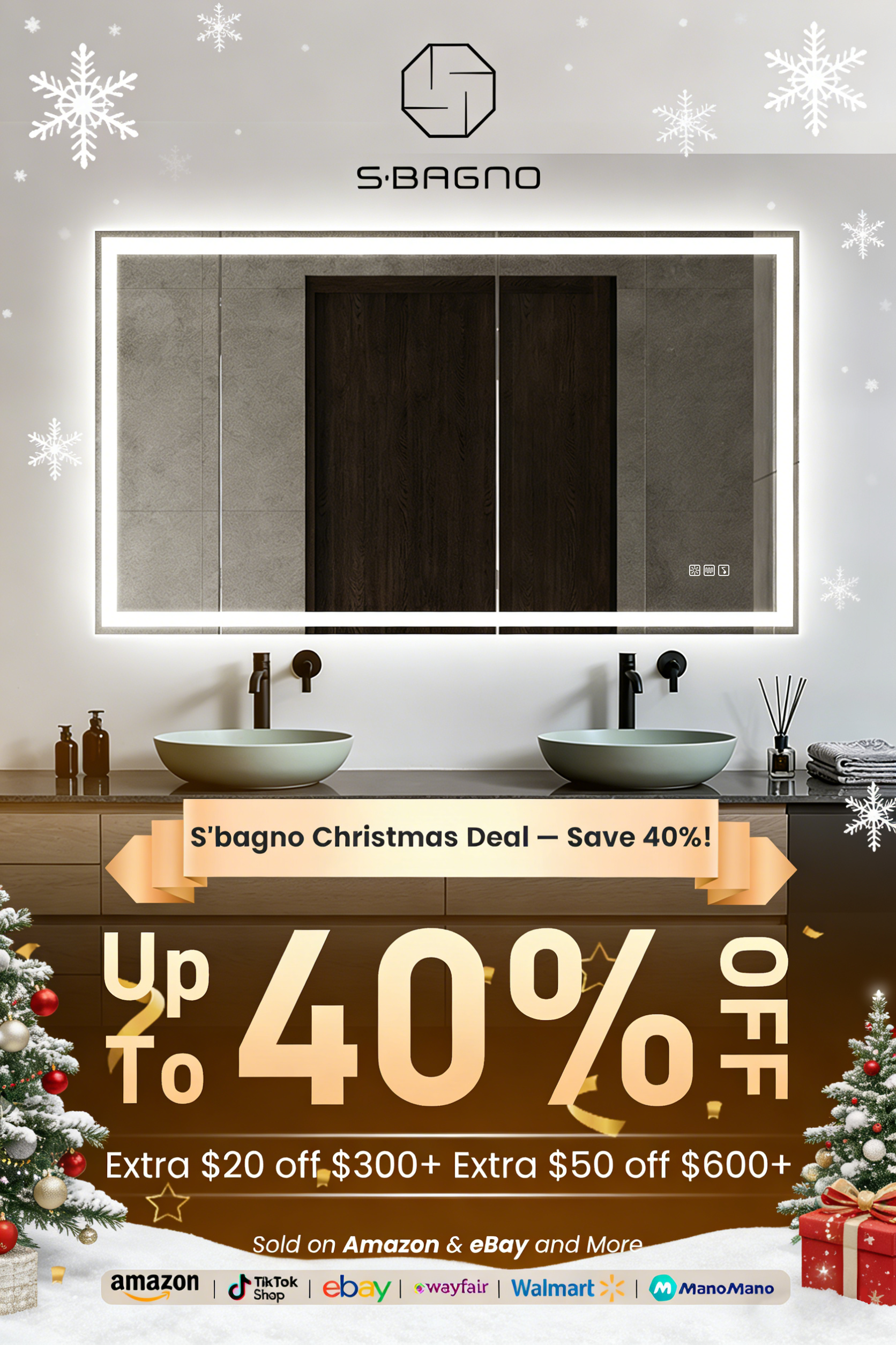 - SBAGNO 28x40 Inches LED Bathroom Mirror with Defogger