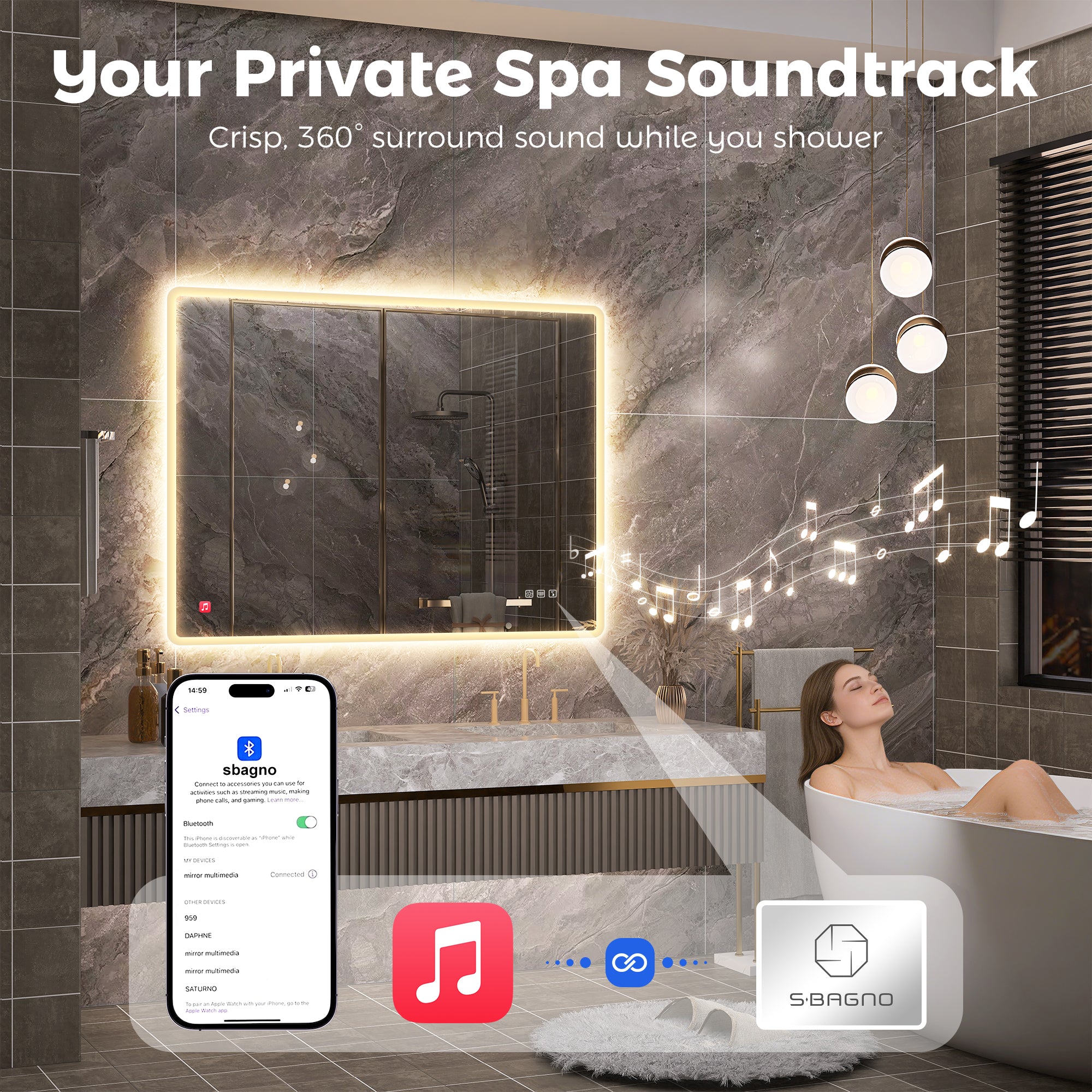 - SBAGNO 24x32 Inches LED Bathroom Mirror with Bluetooth Speakers