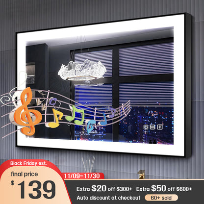 S'BAGNO 39.4x27.6 Inches LED Bathroom Mirror with Black Frame