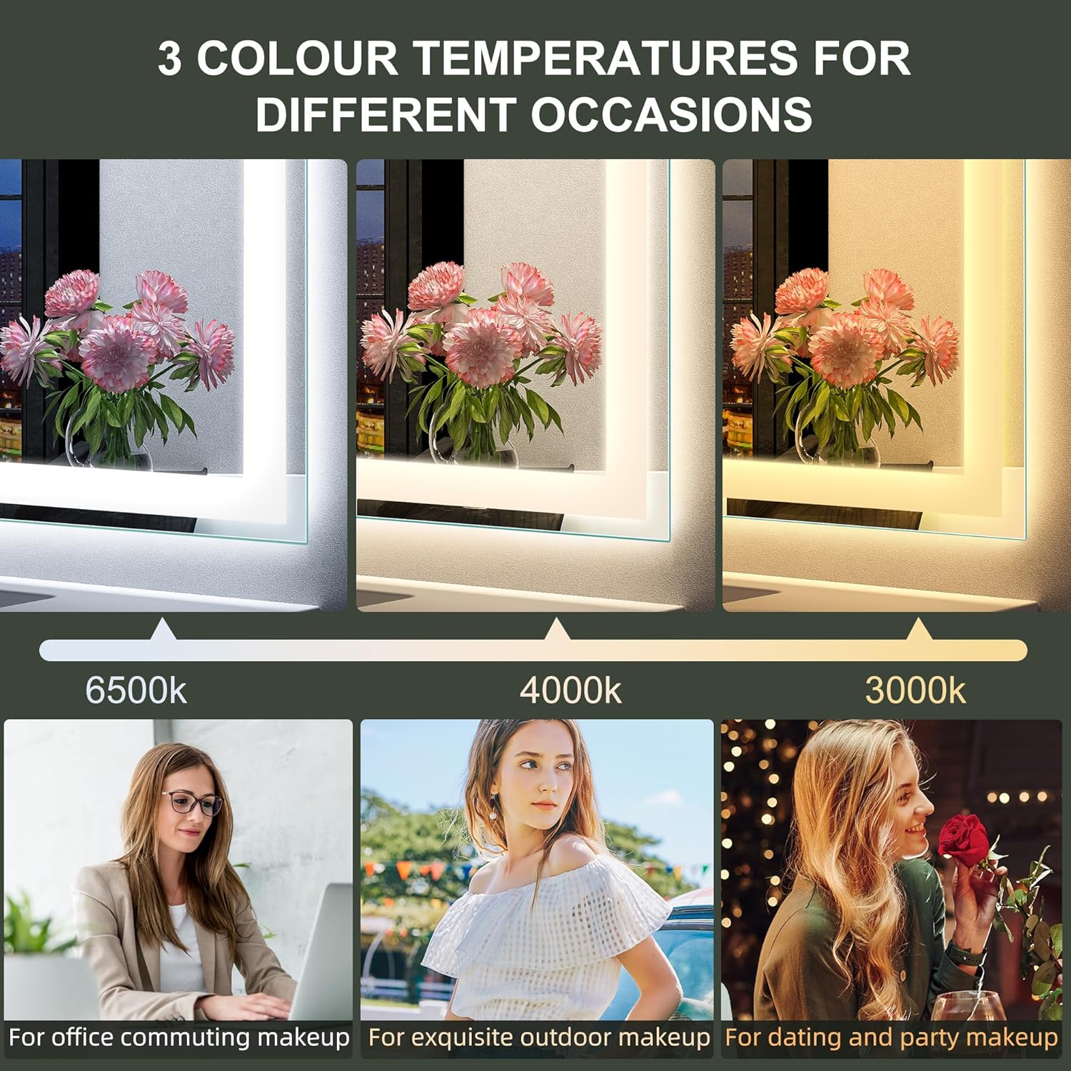 IP44 waterproof for mirror and IP65 waterproof for the LED strip ensure long-lasting performance and mitigate rust and corrosion. Made of 4mm tempered glass, it holds the parts together, even if accidentally broken, very safe.