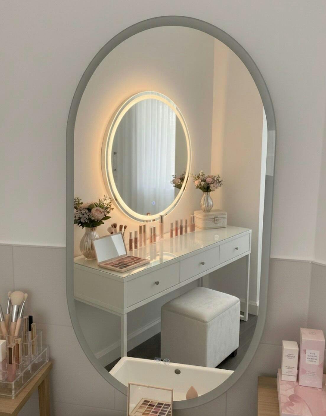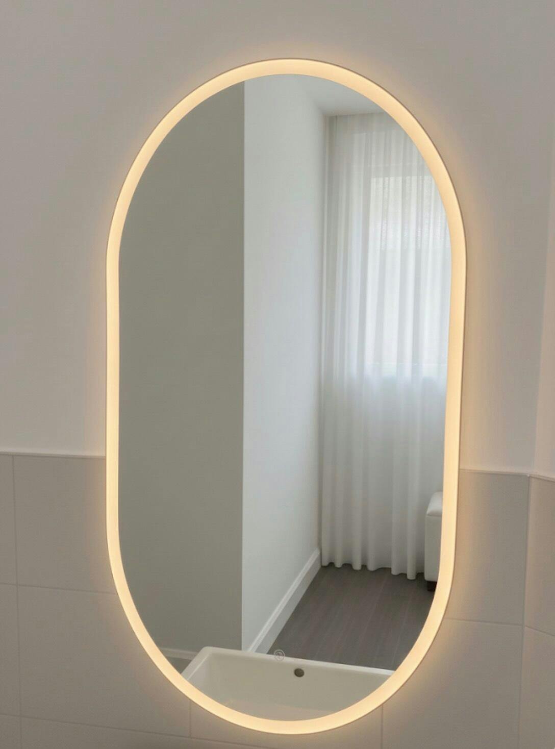 S'bagno bathroom mirror with lighting is made of transparent frosted glass around the edge, emitting a uniform and soft LED light. The soft rounded corner design and simple yet modern style make this mirror not only practical, but also enhance the overall beauty of your room.