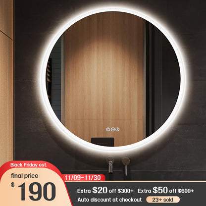 S'bagno 24'' LED mirror for bathroom features both front light and back light, boasting with a bright LED light strips,providing perfect lighting for flawless makeup,skin care and shaving.Transform your bathroom into a glamorous beauty station with this wall-mounted round makeup mirror.
