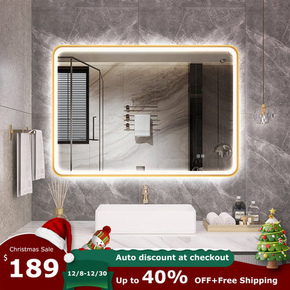 S'bagno 40x28inch Gold LED Mirror for Bathroom with Frontlit & Backlit