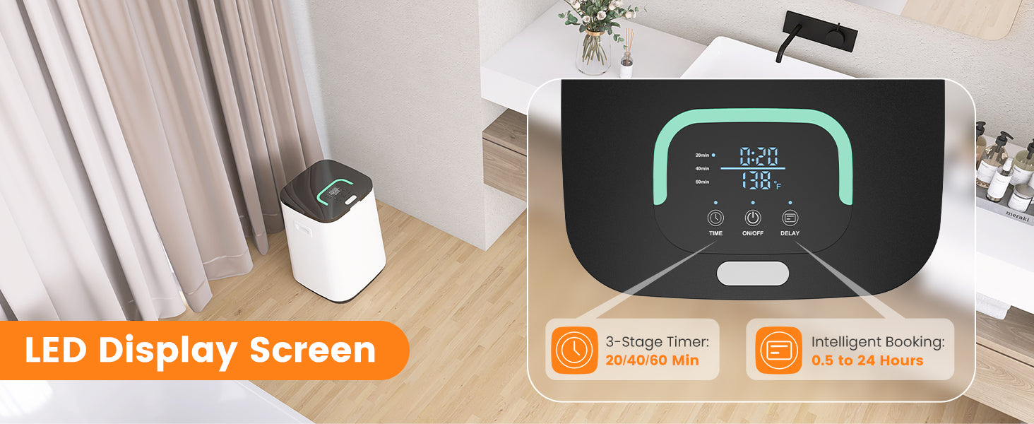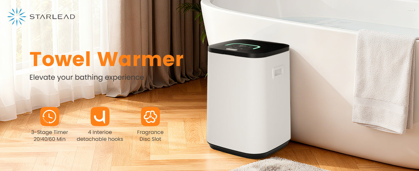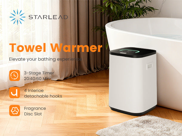 Easy operation: This towel heater is designed with user-friendly features, offering 3 timing options of 20 minutes, 40 minutes, and 60 minutes, as well as a 24-hour delay function. This ensures that you can always enjoy warmth when you need it.