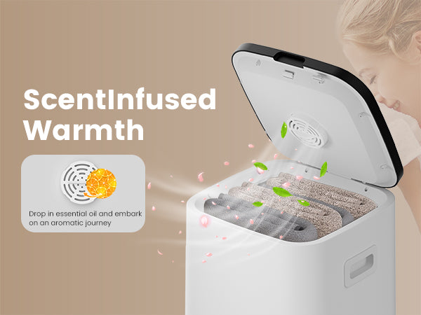 Customizable fragrance: The intelligent towel dryer drum is equipped with a fragrance storage area. Drop in essential oil and embark on an aromatic journey.
