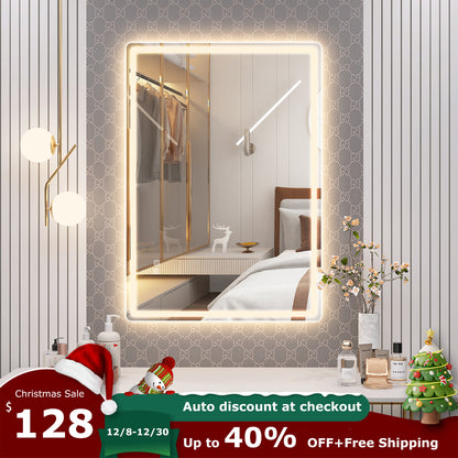 S'BAGNO 40x28 Inches LED Bathroom Mirror with Defogger Vertical/Horizontal
