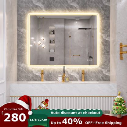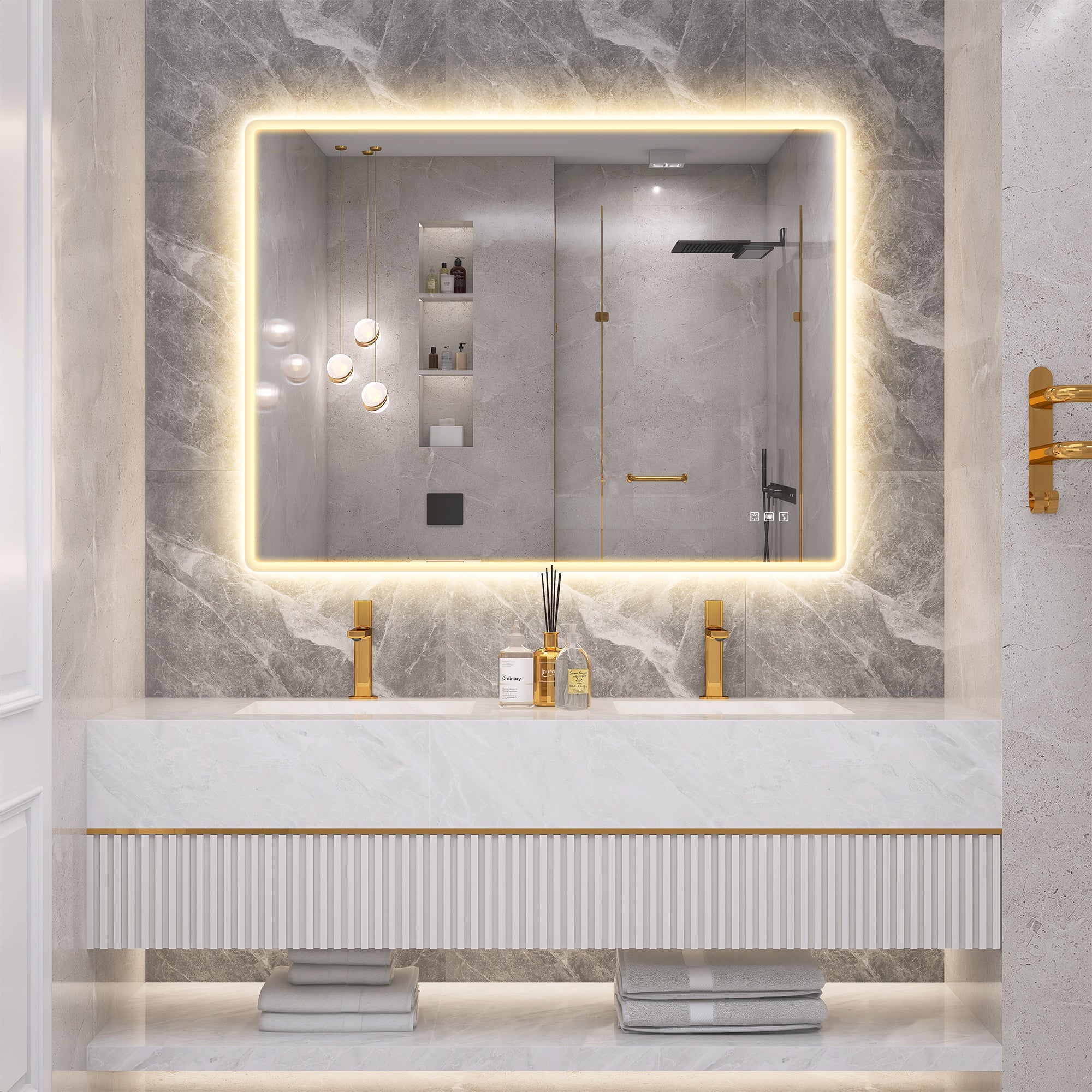 S'bagno 47"x35.2" LED-Bathroom-Mirror, Wall-Mounted-Dimmable-Vanity-Mirror, Bluetooth Speaker,Anti-Fog