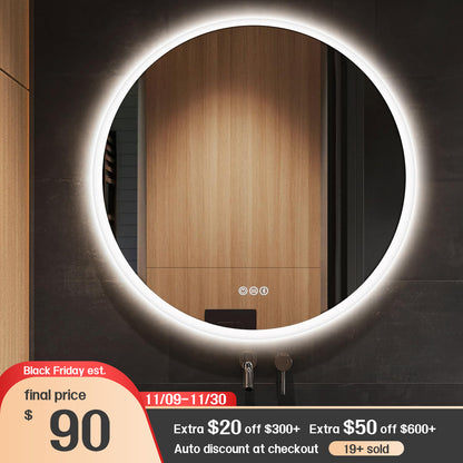 S'BAGNO 24 Inch Round LED Bathroom Mirror with Lights, Backlit and Front Lighted, Anti-Fog Vanity Mirror Wall Mounted
