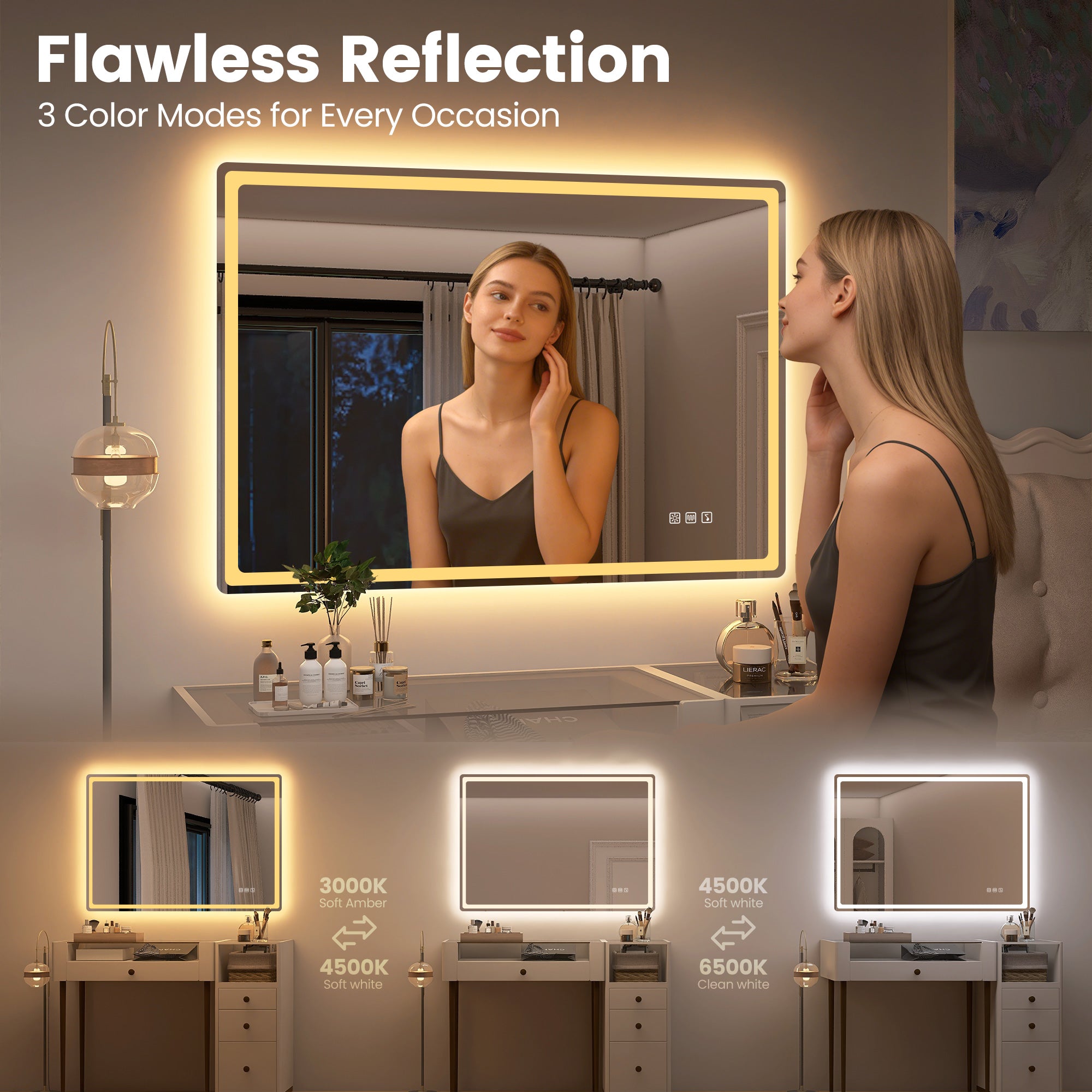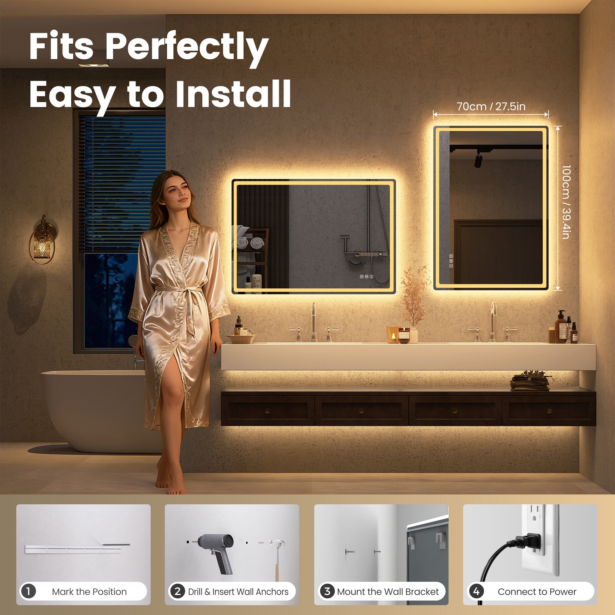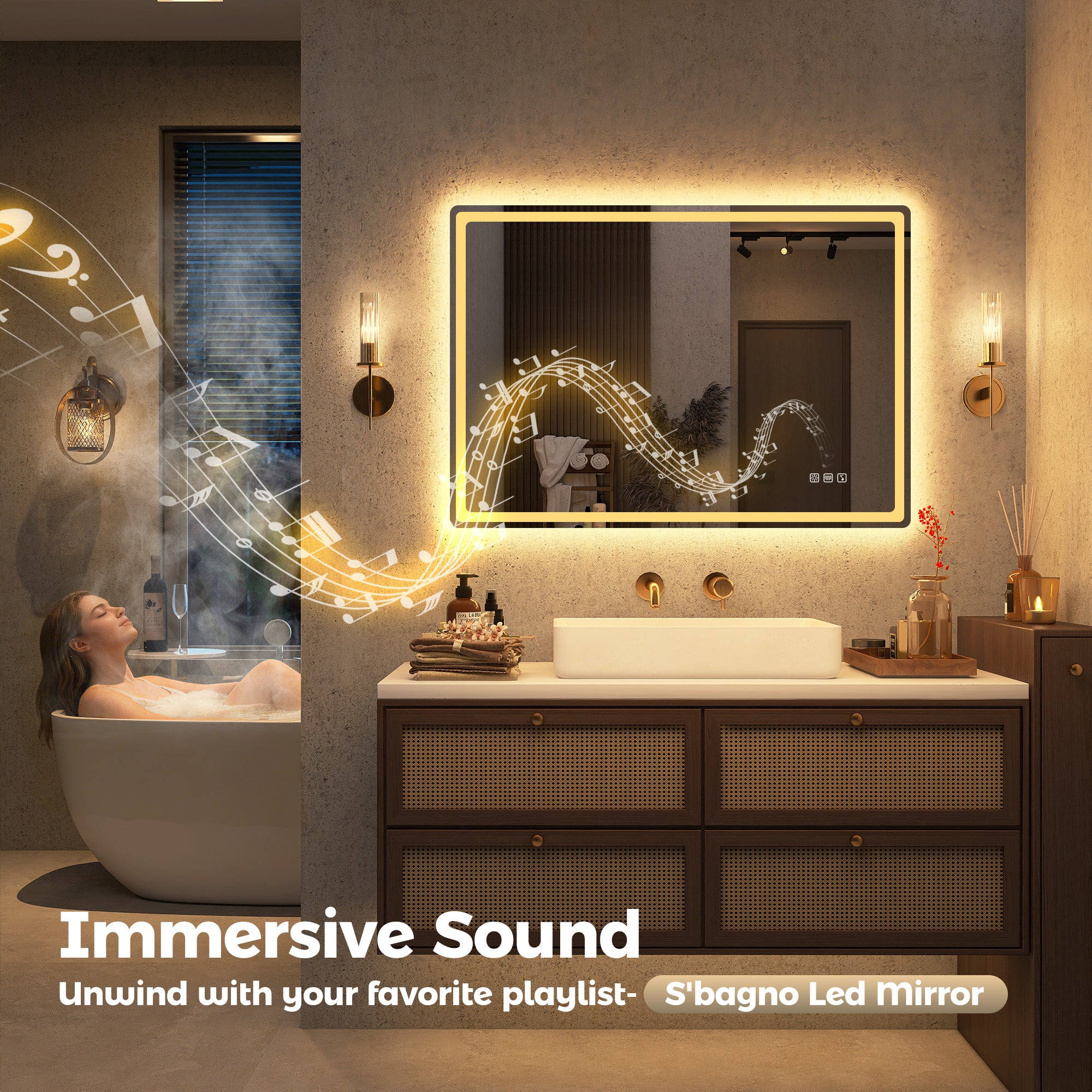 S'BAGNO 28x40 LED-Bathroom-Mirror-with-Bluetooth,Backlit + Front Lit,Anti-Fog,Horizontal/Vertical