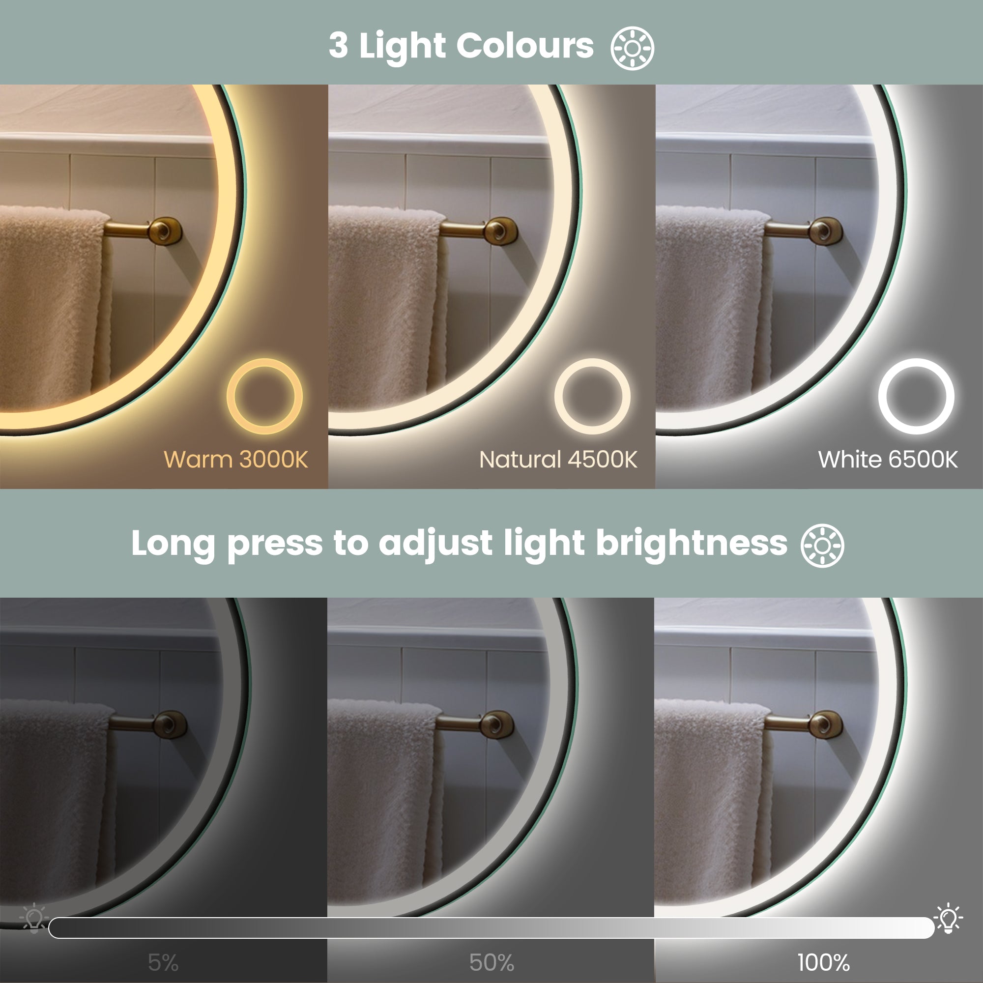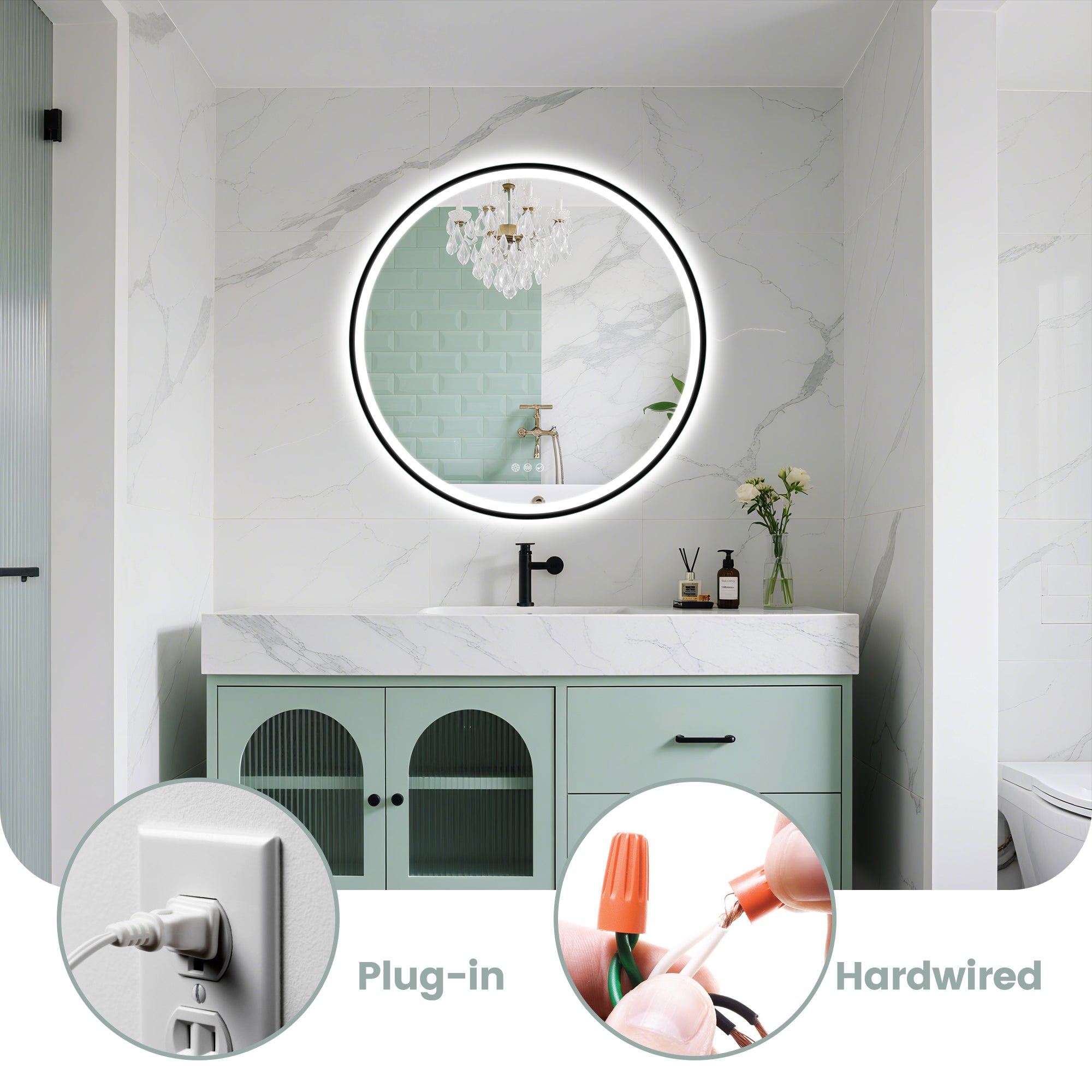 S'BAGNO 24x24 Inches LED Round Bathroom Mirror
