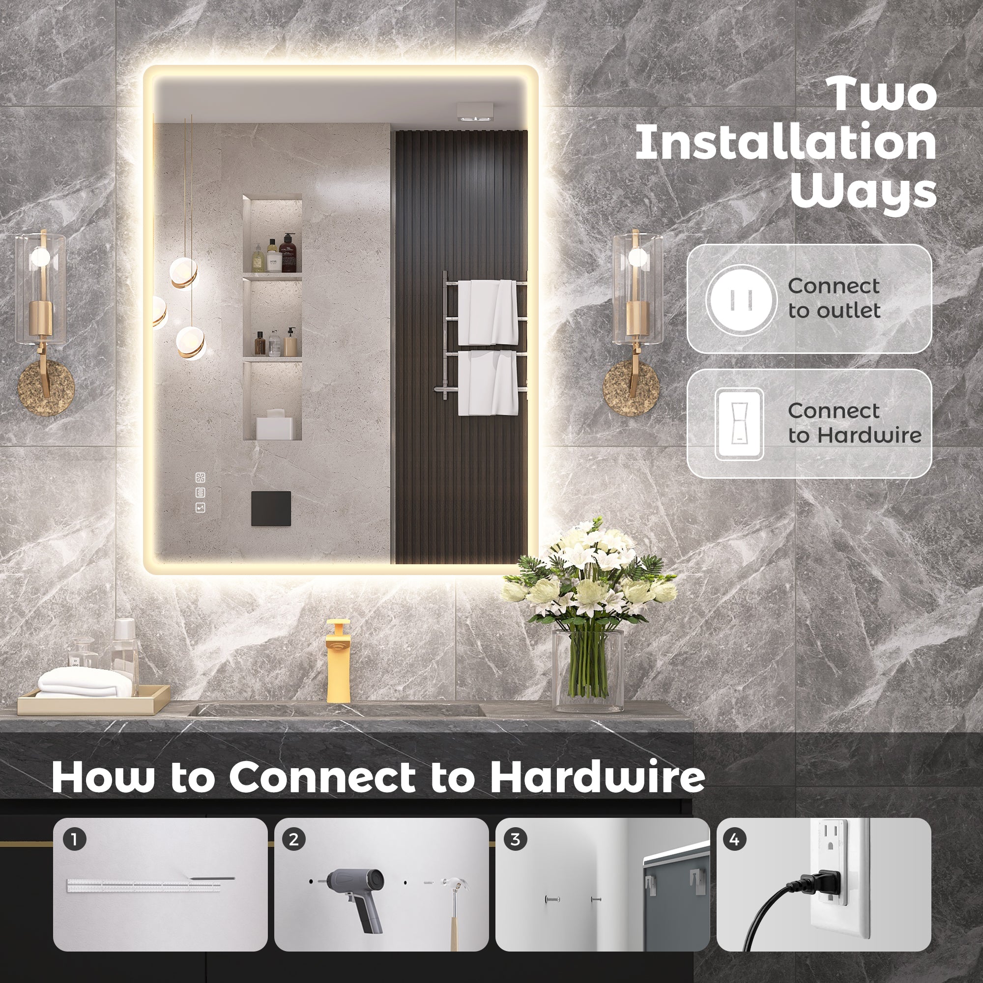 - SBAGNO 24x36 Inches LED Bathroom Wall Mounted Mirror