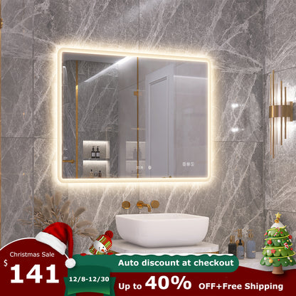 - SBAGNO 28x40 Inches LED Bathroom Mirror with Defogger